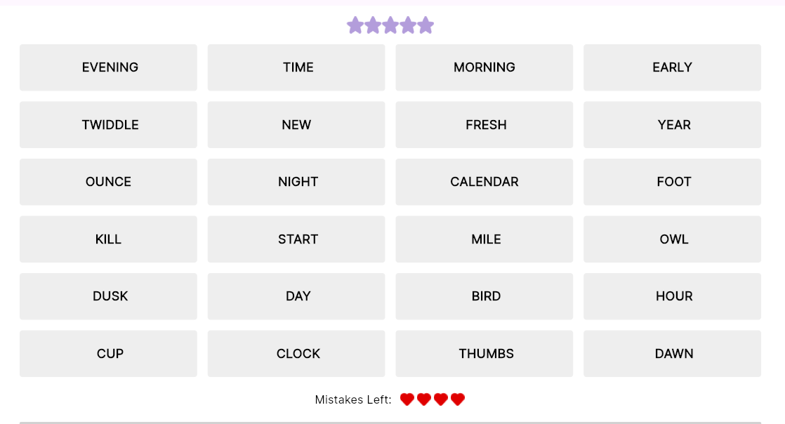 - For every mistake or hint taken one star is deducted